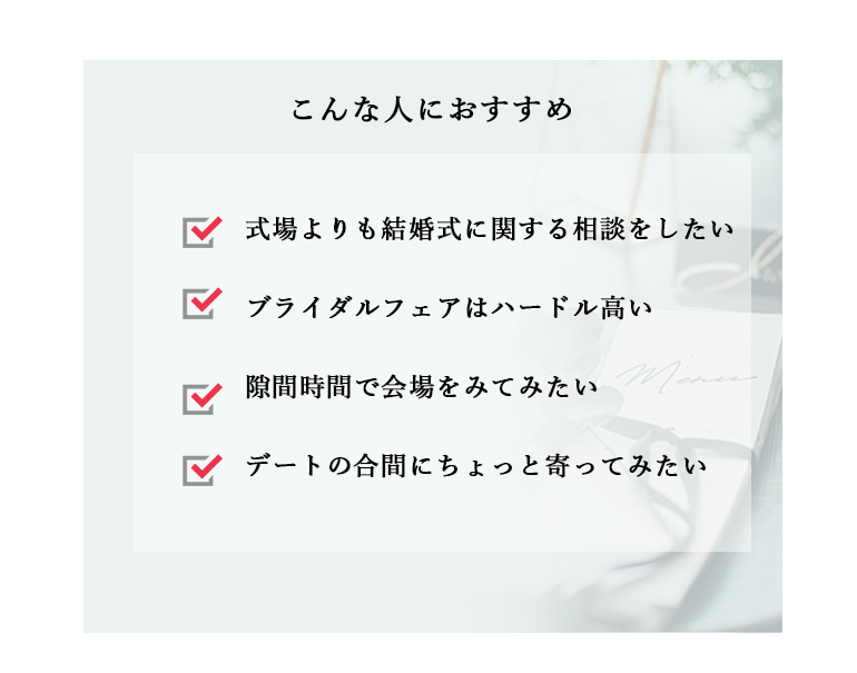 結婚式に対するお悩みや疑問をなんでもご相談ください。