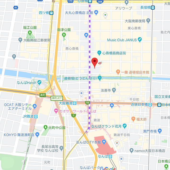 地下鉄御堂筋線「心斎橋」駅4‐B出口より徒歩約5分